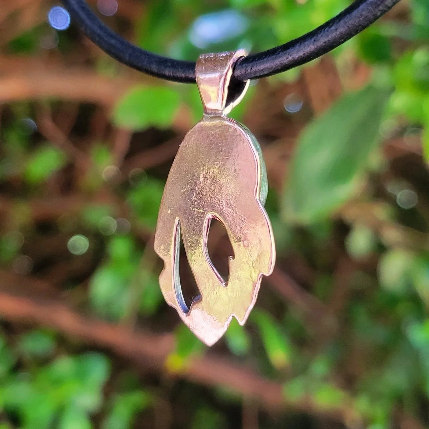 This fantastic art piece features a natural Turquoise, that measures about 12mm x 15mm in the truest sky blue. The perimeter of the hydrangea leaf design is tracked by the matrix of the stone and the lush earth-tone of the stone blends with the copper ‘leaf’. The body of the piece, measuring about 42mm x 20mm, is made from Copper, that is embellished with Sterling and Fine Silver. The White Topaz is 3mm and set in a Fine Silver ‘bun’ setting. Smokey Quartz, 2mm, is flush set in Sterling Silver along with White Topaz (1mm). The copper leaf design is both embossed with Hydrangea Leaf but also textured and patinaed to bring out the depth and contrast of the design. This pendant comes on a 3mm, 18” Greek leather cord so you can wear it right away and goes with everything. The piece can also be fabulously paired with any of your favorite chains to change up the look and keep summer going through all the seasonal outfits with you.
