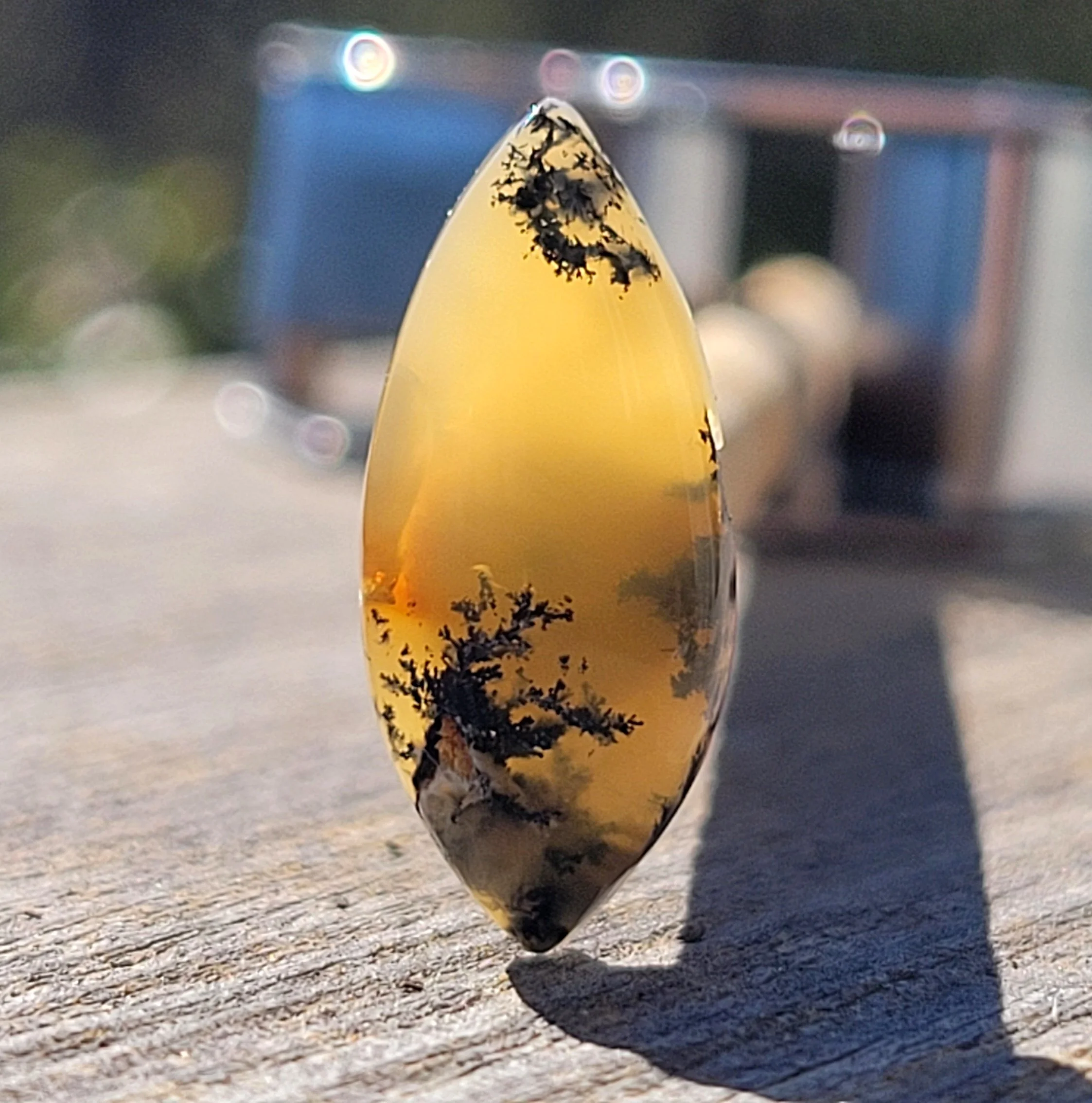 This little stone turned out to be saturated in honey gold, clear color with very little fracturing inside. This will make an excellent gem to facet. During the ‘peeling’ process, I can also preform the rough opal to be ready for a selected gemstone shape. What faceted shape would you most like to see this gem finished in?