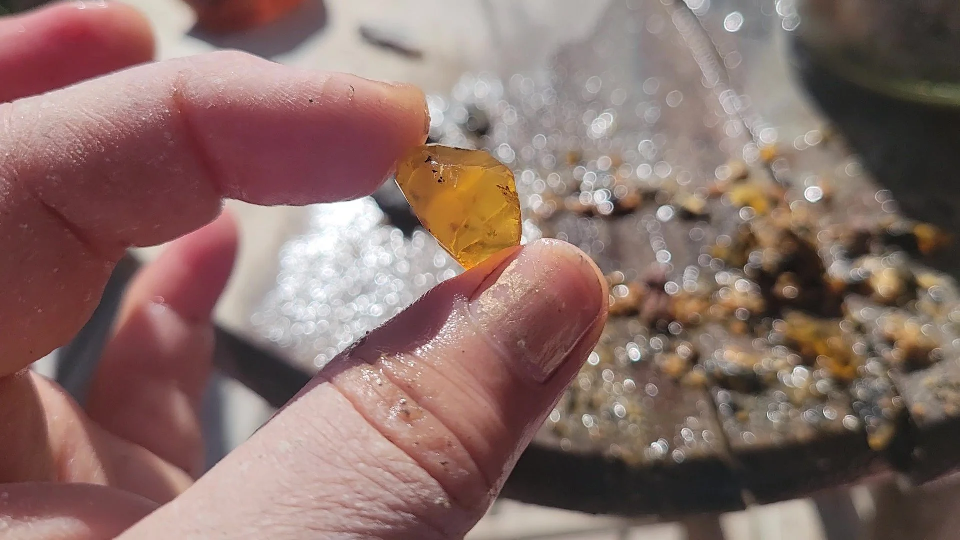 We hit the very end of last year’s Fire Opal season at the Outlaw Rocks claim in Southern Oregon. The weather was already changing and the outdoor studio season was also coming to a close as well. In order to get to the glowing opal goodness in many pieces that we mined, a crust of host rock needs to be removed. It’s a dirty job, so outdoor studio is the best location for this chore, and as spring has arrived, we’re outside freeing the opals in the sunshine to find the amazing gems inside.