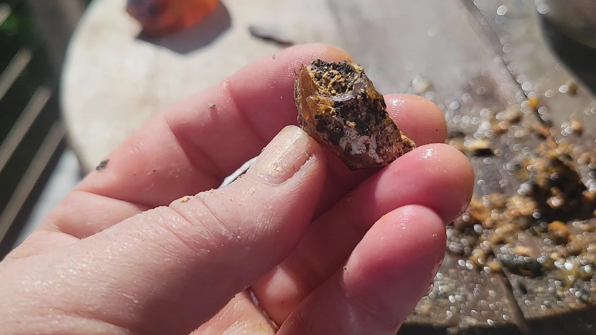 This little nugget is covered in the matrix where the opal was born; hydrothermal veins in volcanic rock. There’s no way to know just how good the opal is until we get it uncovered and can see if it’s got inclusions and cracks, or if it’s clear and vibrant.