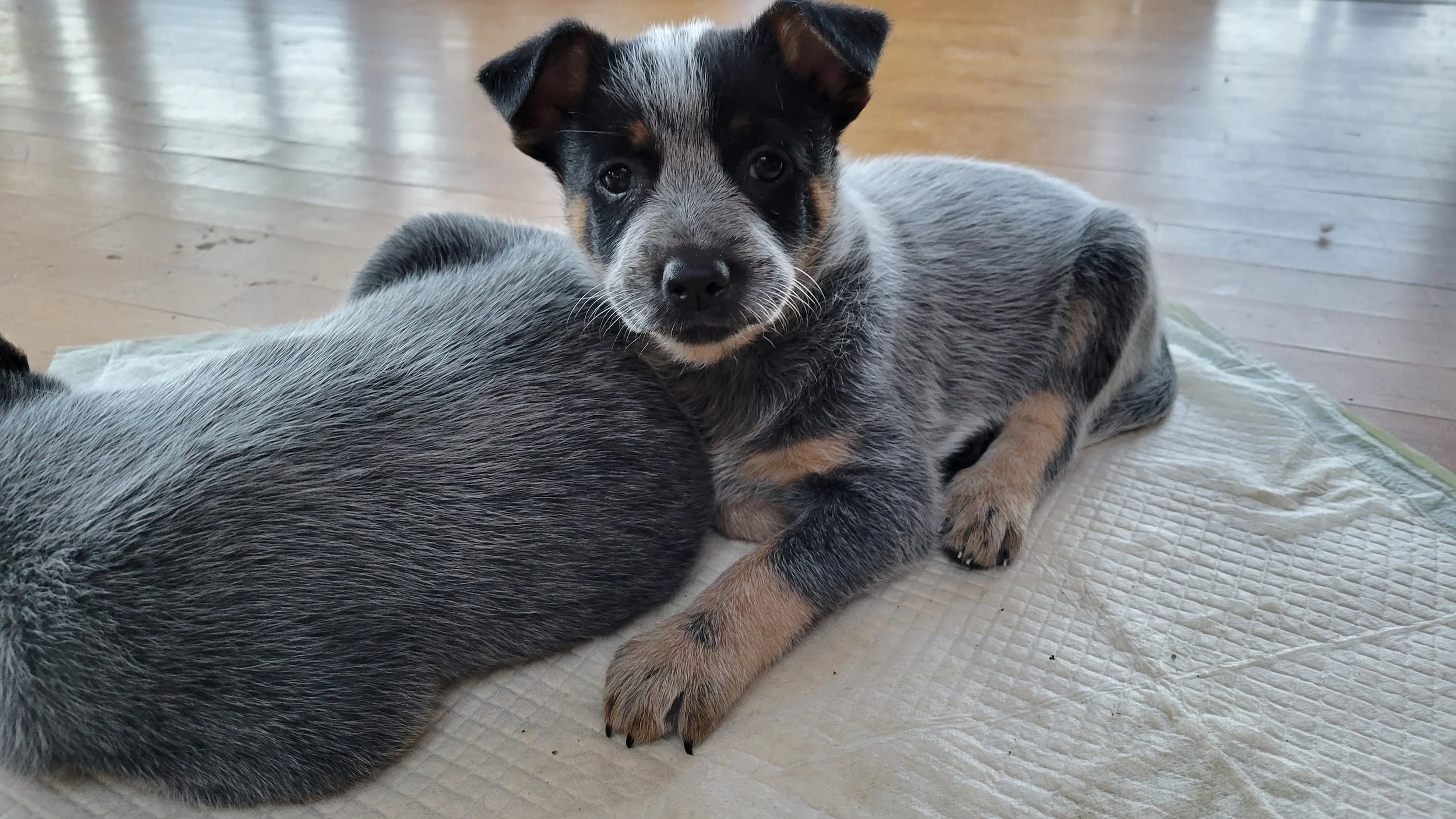A super cool pup with bunches of energy, curiosity, and one heck of a great athlete. The litter has just figured out how to chase after each other, and the toys, with great glee and Woodrow is usually at the front of the pack. He’s expert at finding and getting the toy, then he’ll throw down a good wrestling match to keep it.